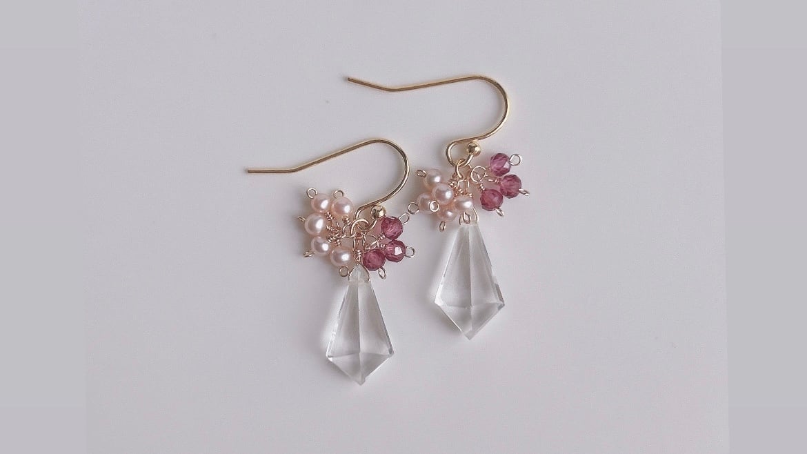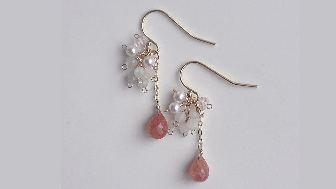 【14kgf】心がふわりと透きとおる。 (ぷるんとしたスコロライトとピンクアメシストとモルガナイトと水晶とムーンストーン) ピアス/イヤリングꕤ