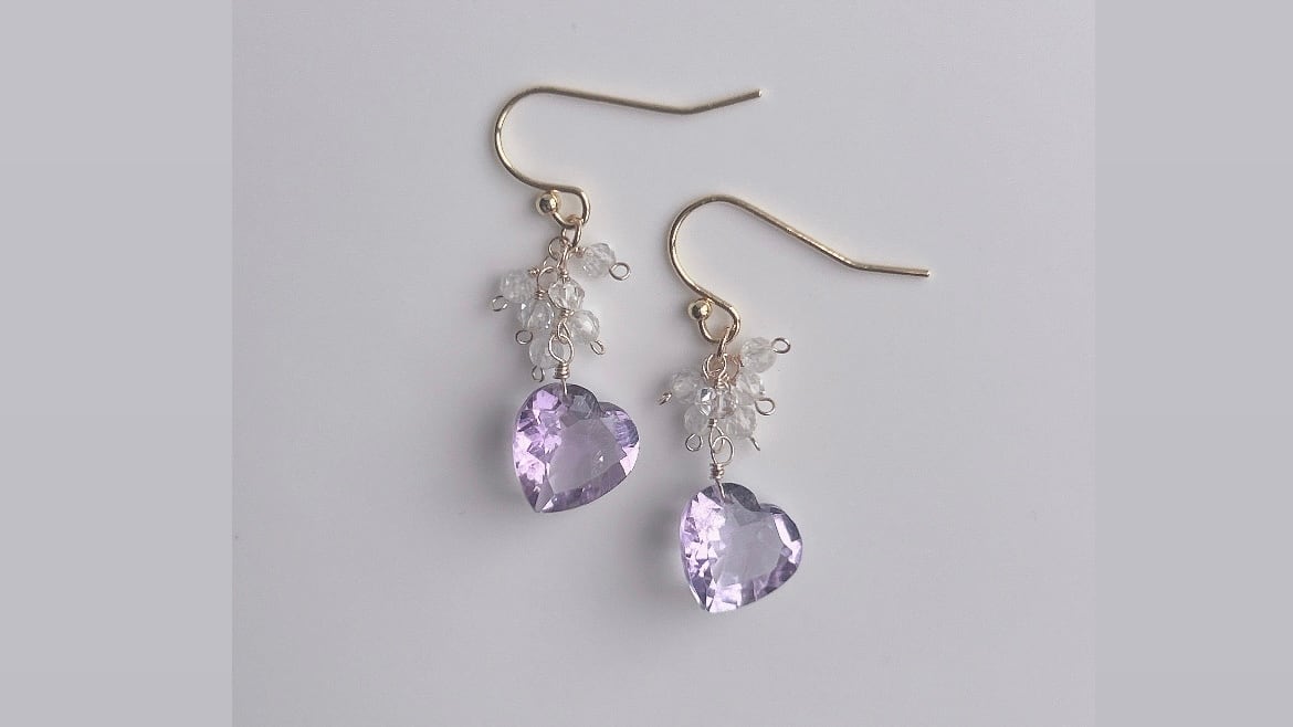 Restok!【14kgf】宝石質 アメシストハートコンケーブ、ハーキマーダイヤモンド、キラキラのホワイトトパーズ ピアス/イヤリングꕤ