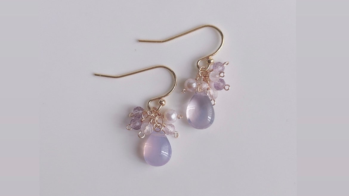 【お願い】イヤリング変更可能です。 必ず、金具選択または、備考欄にピアスかイヤリングか記載してください(*ᴗ͈ˬᴗ͈)ꕤ 記載のない場合、ピアスのままお送りいたします♥´- ほんのり乳白色のラベンダー色。1度手にすると心を奪われる美しい石。高品質なアメシストを高度な技術により2度加熱してこの美しいミルキーなラベンダー色を出しています。元はアメシストです。 選ばれし高品質なアメシストが、スコロライトへと変身できるのです。 小ぶりながにボリューミーに仕上げました。 個体差がありますが、全体的にバランスのよい粒を選び、ペア取りしていきます。 ランダム発送とさせていただきますのて、ご了承下さい。 ¦ 《素材》 ✿フックピアス: 14kgf ✿イヤリング:16K鍍金 他 14kgfピアスへ変更可能です➡ご相談のためInstagramへDMください。 ※ノンホールピアス(樹脂イヤリング)の取り扱いはございません※ │注意事項│ ※サイズ変更が不可のものがございます。 内容をご確認のうえお買い求めください。 ※その他ご要望がある際は、備考欄にご記入ください*° お急ぎの際は、お手数ですが、 instagramのDMよりお問い合わせくださいませ♪ ※デザインの変更は承れません。 ※天然のもののため、クラックや内包物があるものもございます。それも天然石、天然物の良さとしてとらえていただけましたら幸いです。 ※ご注意※ お取扱いは共通して、水に付けないようにして下さい( * ॑˘ ॑* )⁾⁾ 天然石は水に強いものがほとんどですが、アクセサリー金具は全く水に強くありません。 水や汗、皮脂が付いてそのままにしていると金具の変色に繋がります。 変色防止剤を塗布しておりますが、そのまま放置して酸化すると防げません。 汗や皮脂を柔らかい布で拭き取り、ジッパーなどの密閉された袋で保管することをおすすめします♥ 金具のないゴムブレスレットは水に濡れても大丈夫なことがあります(水に弱い天然石もあります)ので、ぜひご相談ください♥ .. Natural Stone pierced earring, Gold Plated pierced earring, Love earring, Dainty Womens earring, Minimal Gold earring, Delicate earring どの金具に変更しても合いますので、 お好きな使いやすい金具をご選択ください。 ※このままクロッシングフープで変更なしの場合、 「ピアス」のみご選択で追加のオプション料金は必要ありませんのでご注意ください。 複在庫がございますのでランダムに発送させにいただきます。 ※金具の変更できます。金具変更の場合は、選択欄よりお選びください。