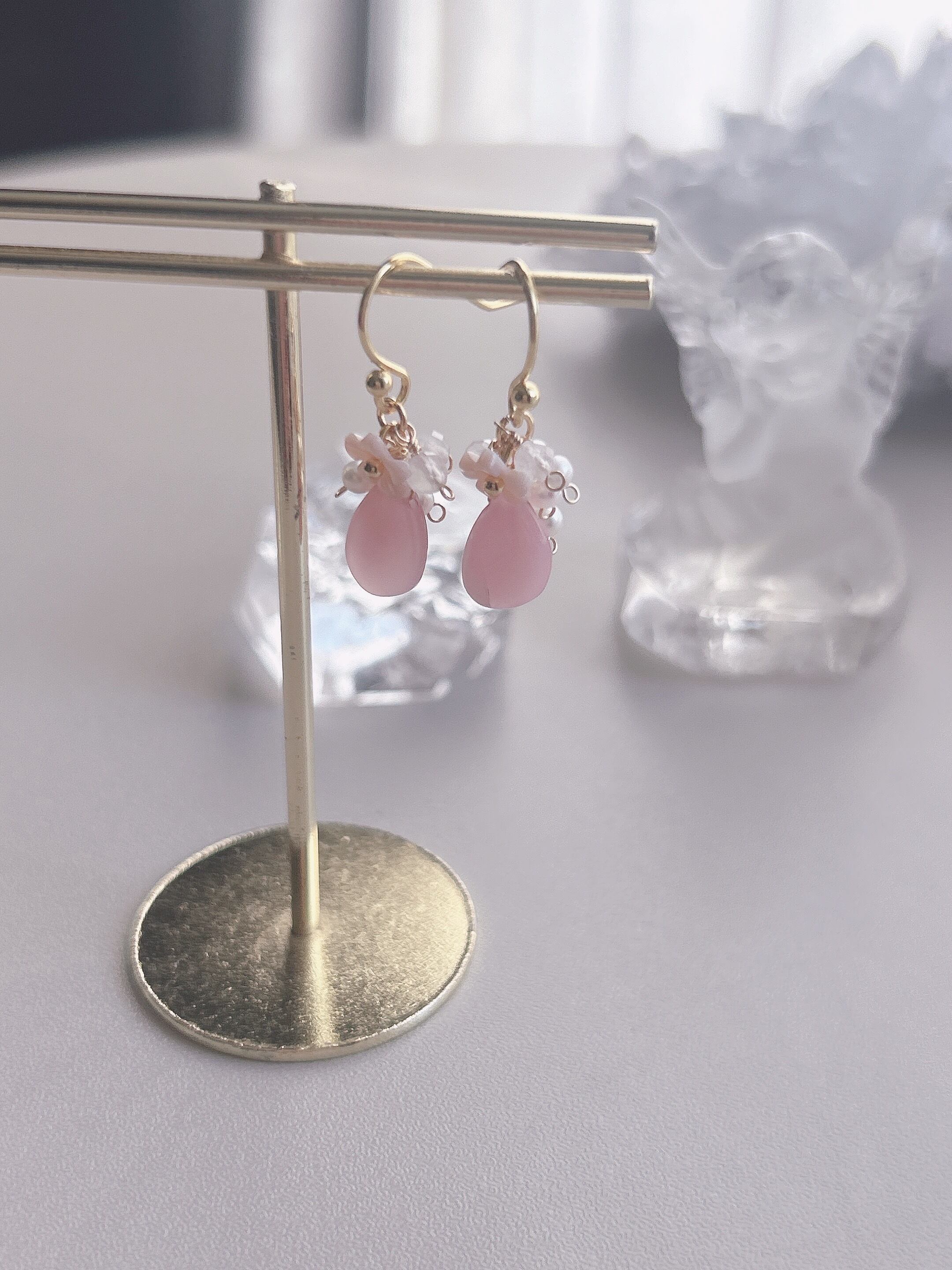 小ぶりで付けやすく、そして甘すぎない大人ピンクが耳元を華やかにしてくれます。