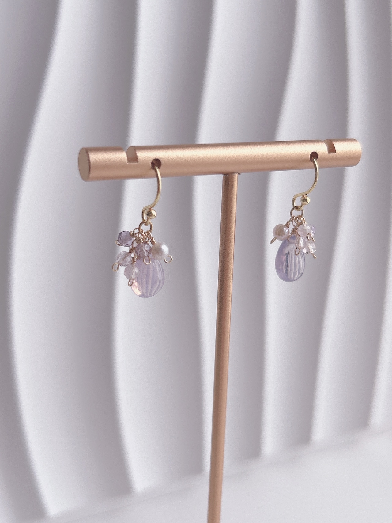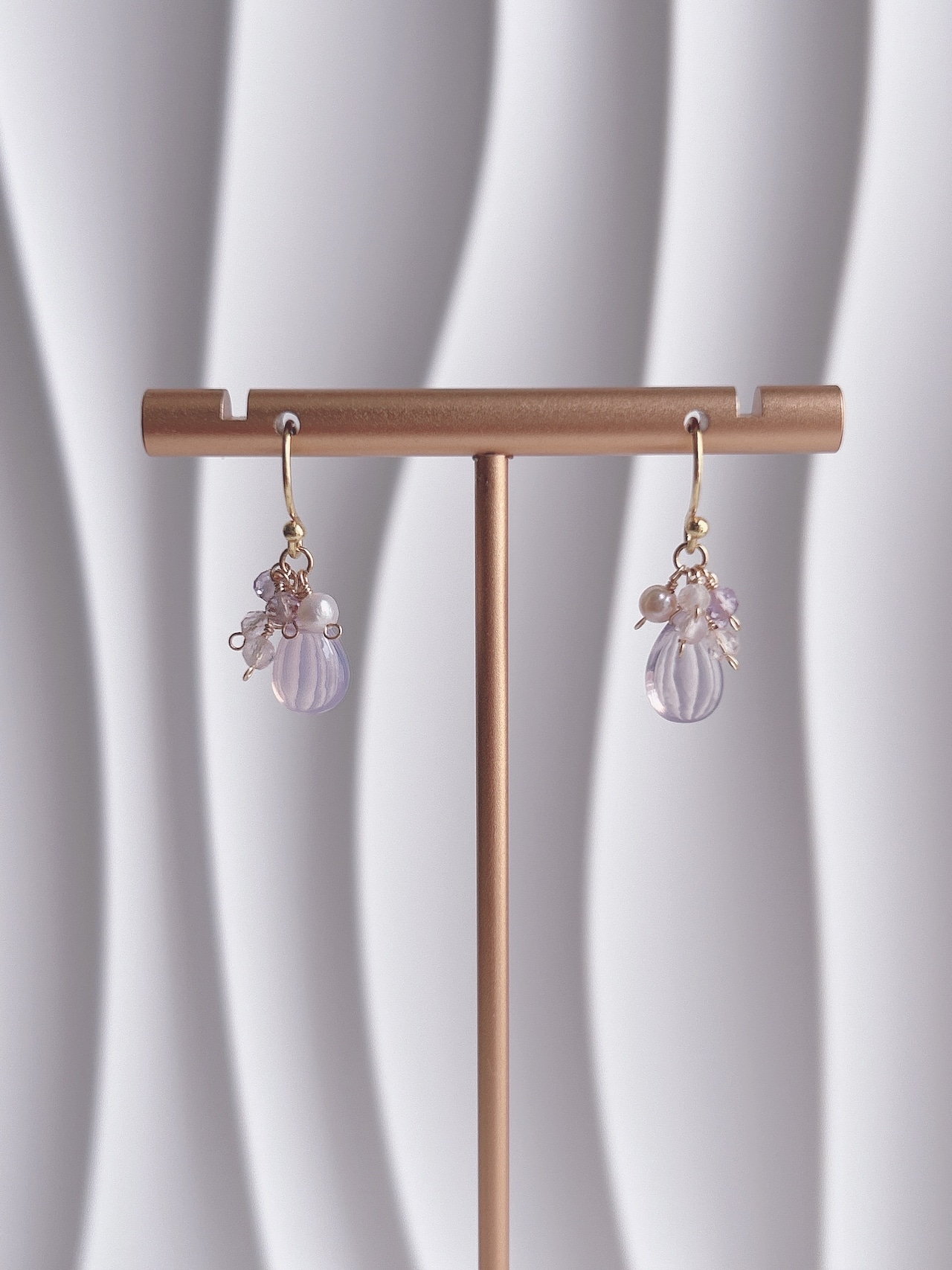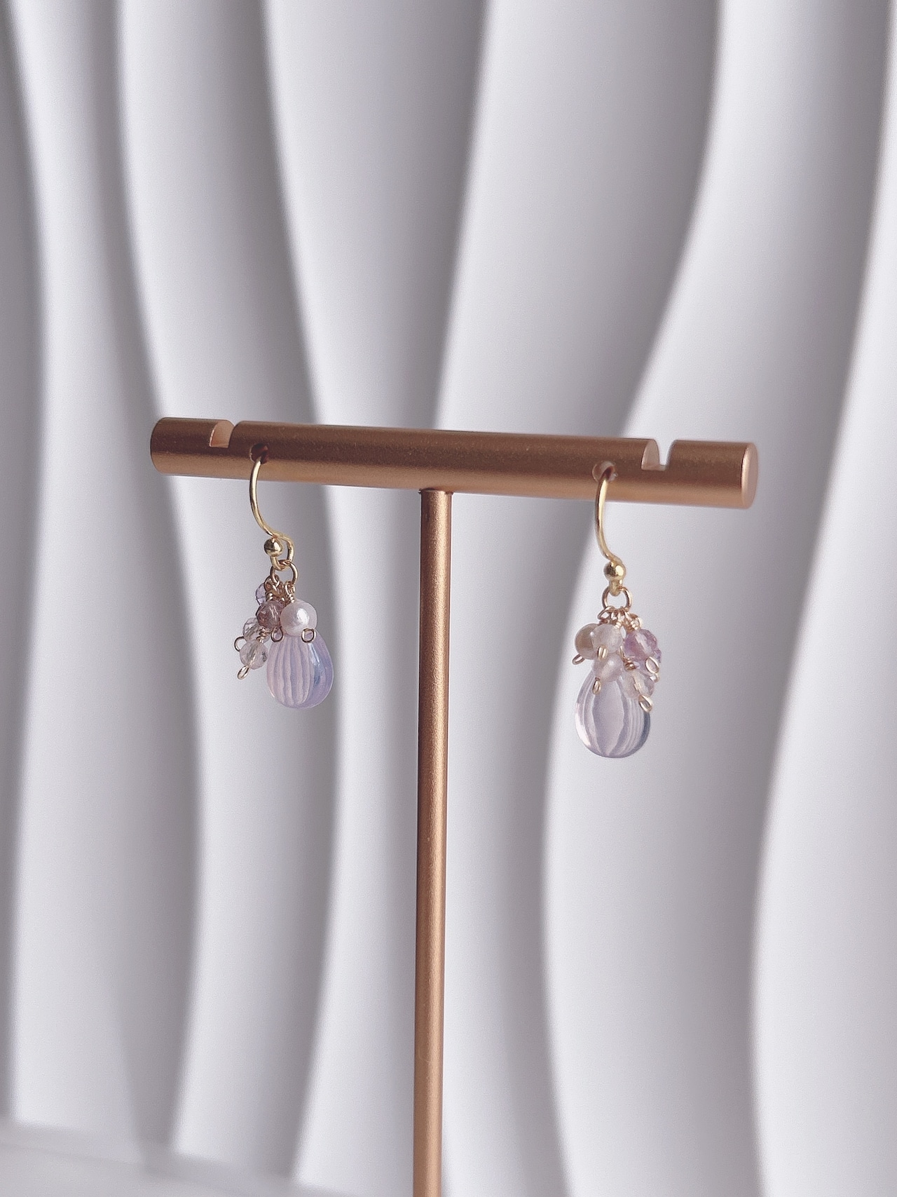 【14kgf】心がふわりと透きとおる。 (ぷるんとしたスコロライトとピンクアメシストとモルガナイトと水晶とムーンストーン) ピアス/イヤリングꕤ