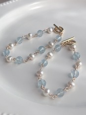 「透明感あふれる海の記憶。アクアマリン×淡水パールの清らかブレスレット」