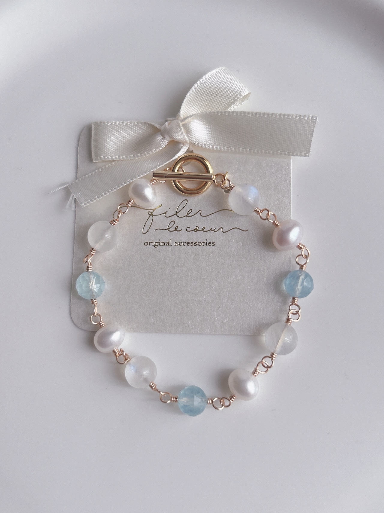 Restok!安心感と幸運を運ぶお守り。ブルームーンストーン×アクアマリン×淡水パールのやさしい煌めきブレスレットꕤ