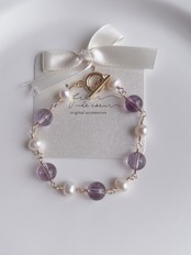 「透明な紫の輝き。ボリビア産アメシスト×淡水パールの上品ブレスレット」