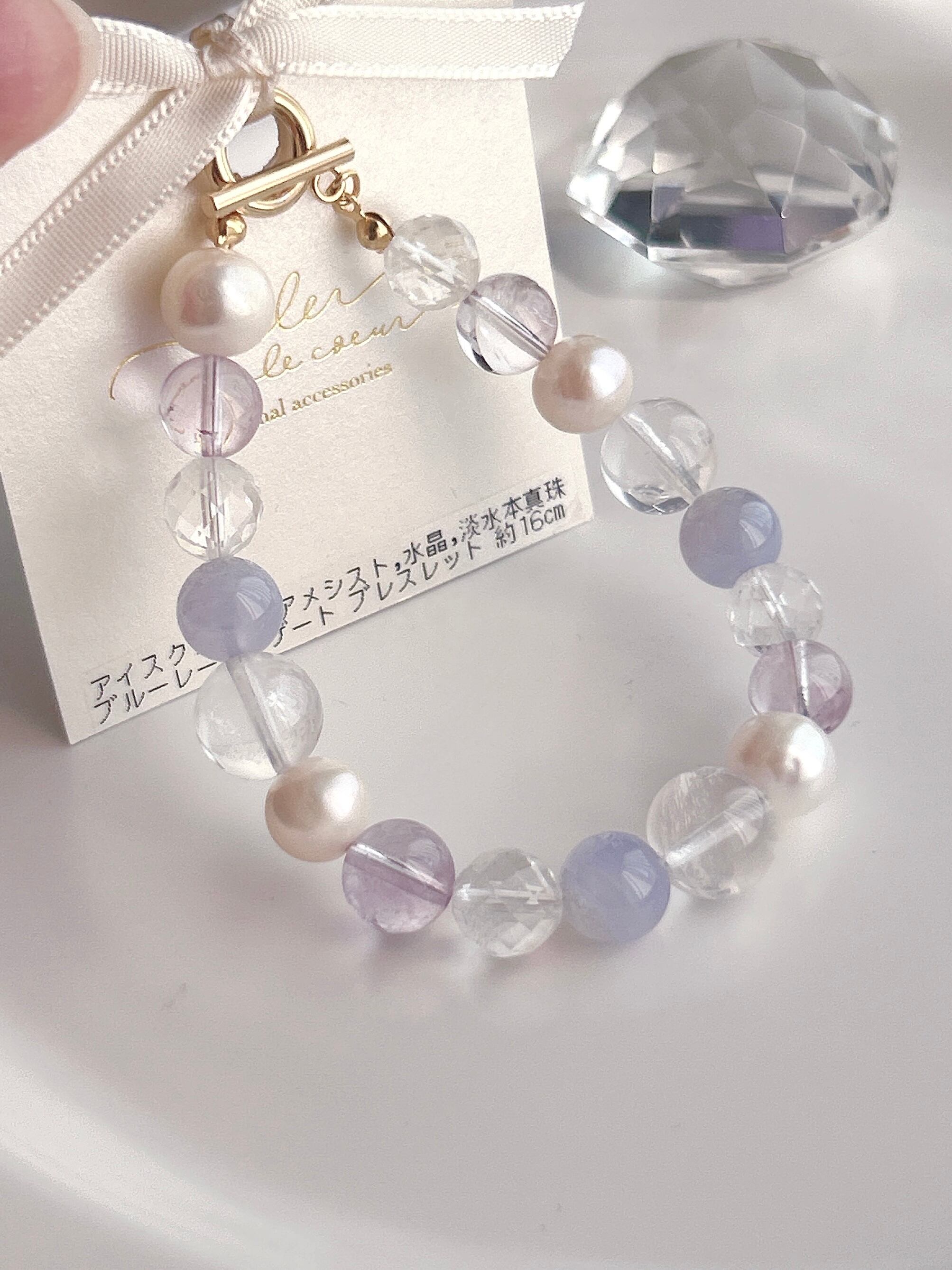 Restok!静かな色の重なりが、美しく心をほどく。ラベンダーアメシスト×ブルーレース×ミルキークォーツ×64面カット水晶の可憐ブレスレットꕤ