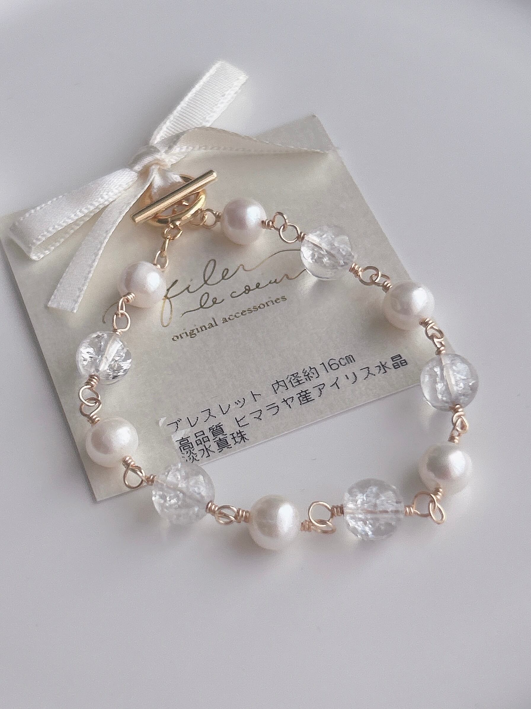 「虹を秘めた光の記憶。ヒマラヤアイリス水晶×淡水パールブレスレット」