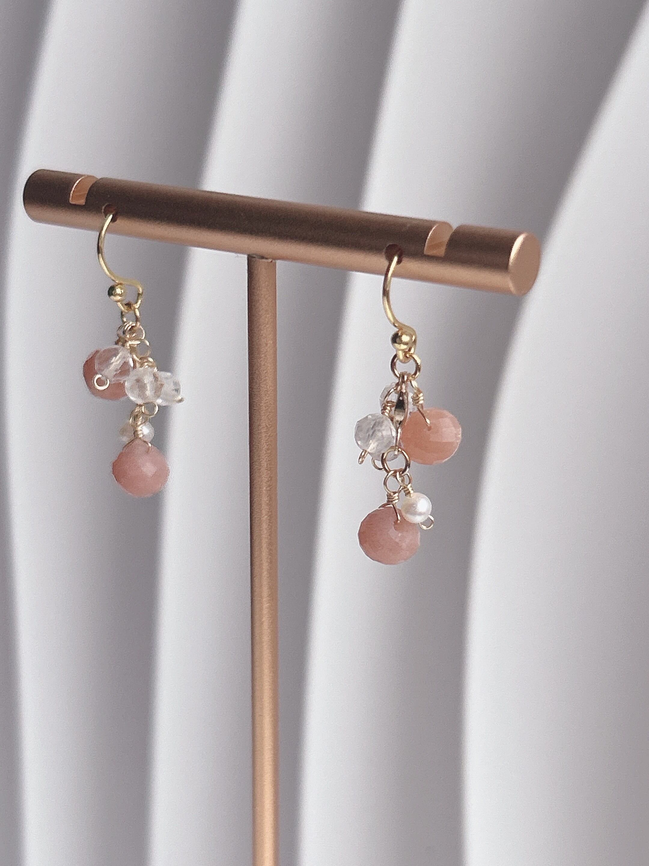 【14KGF】ピーチムーンストーンと水晶と淡水パール ピアス/イヤリング ꕤ