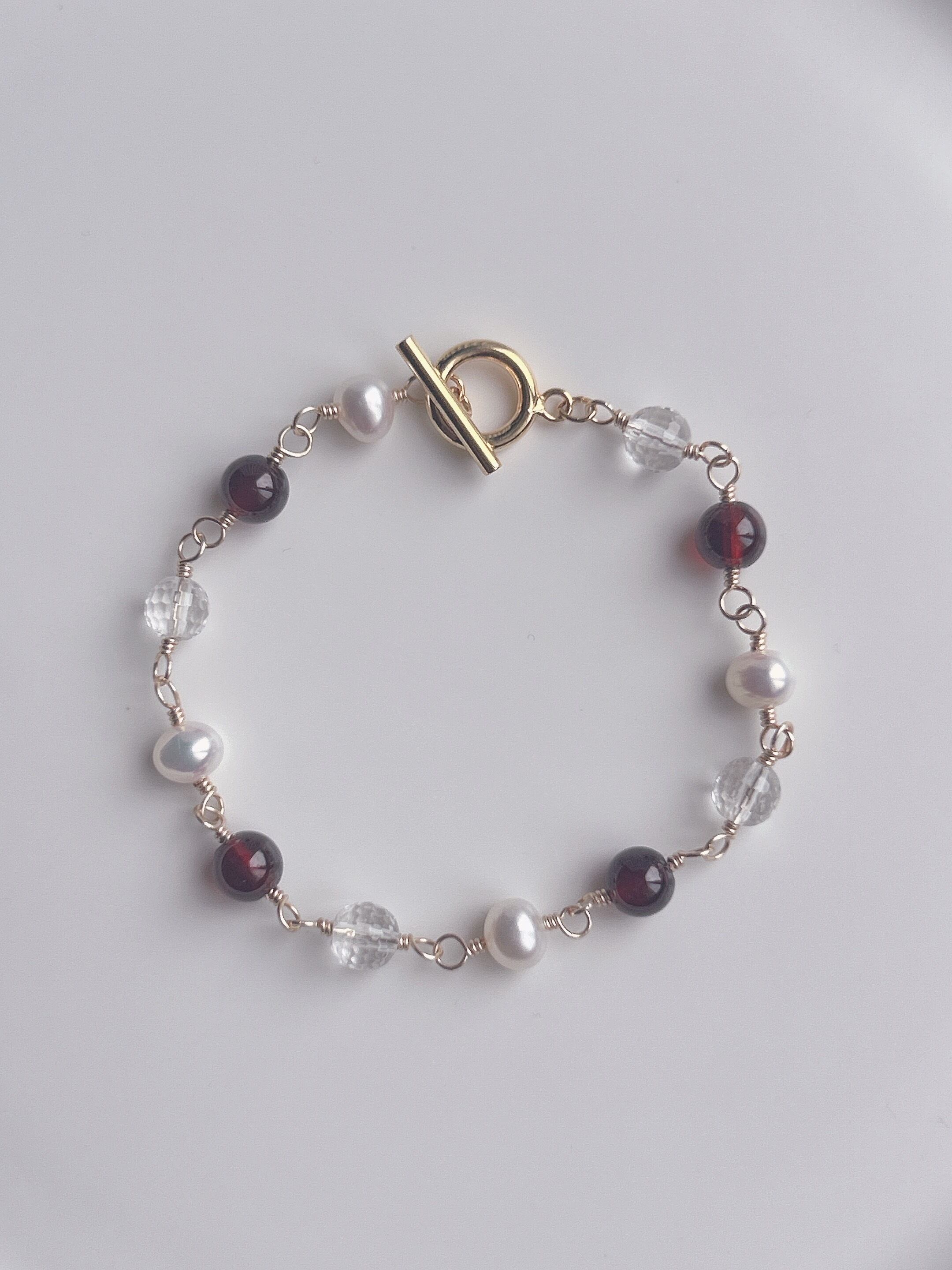 14KGF Garnet Bracelet, Elegant Jewelry, Handmade Accessories, Symbol of Love and Bonding