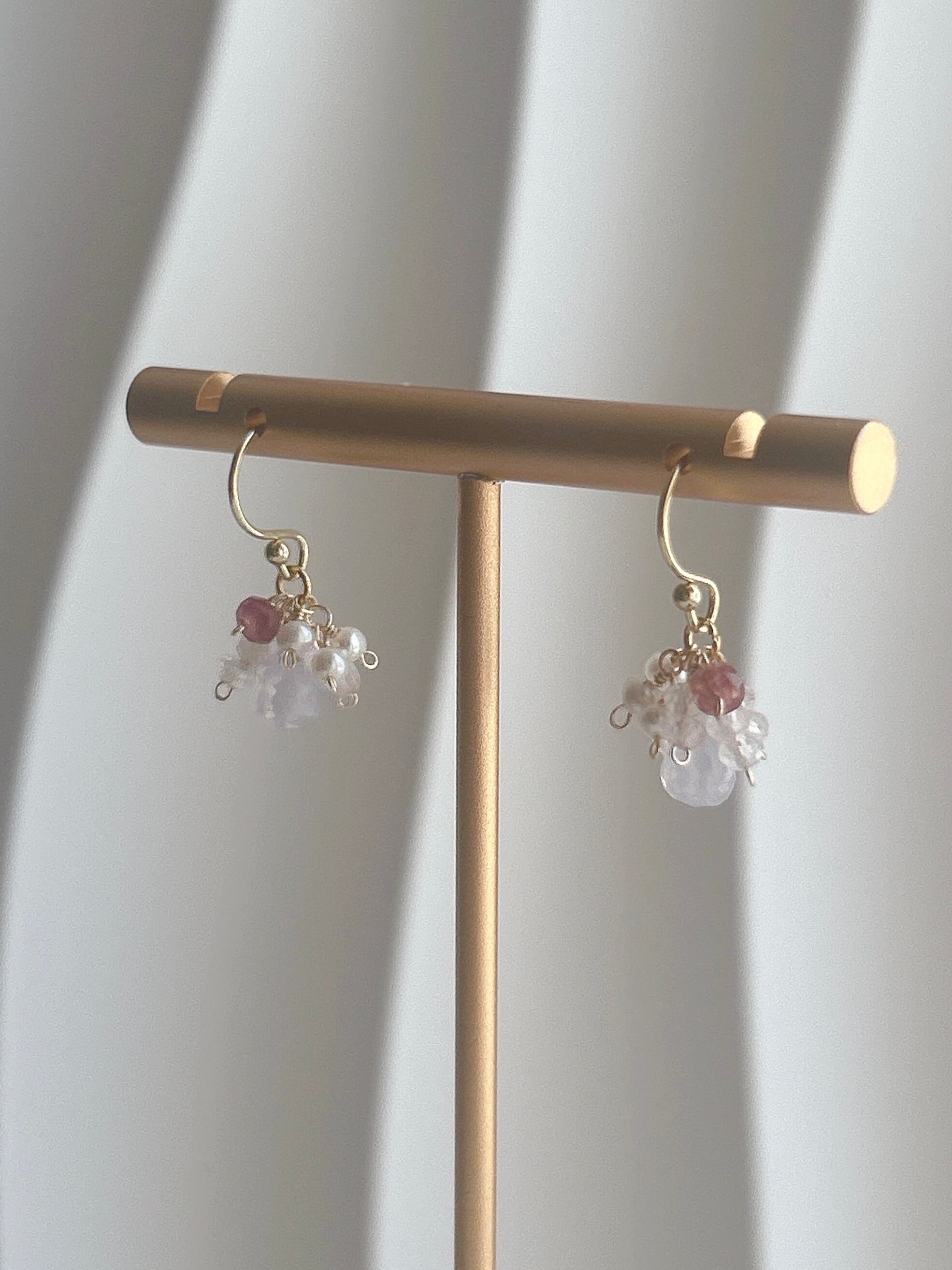 再販♡【14kgf】スコロライト&モルガナイト&ピンクトルマリン 小ぶりで華やぐピアス/イヤリングꕤ