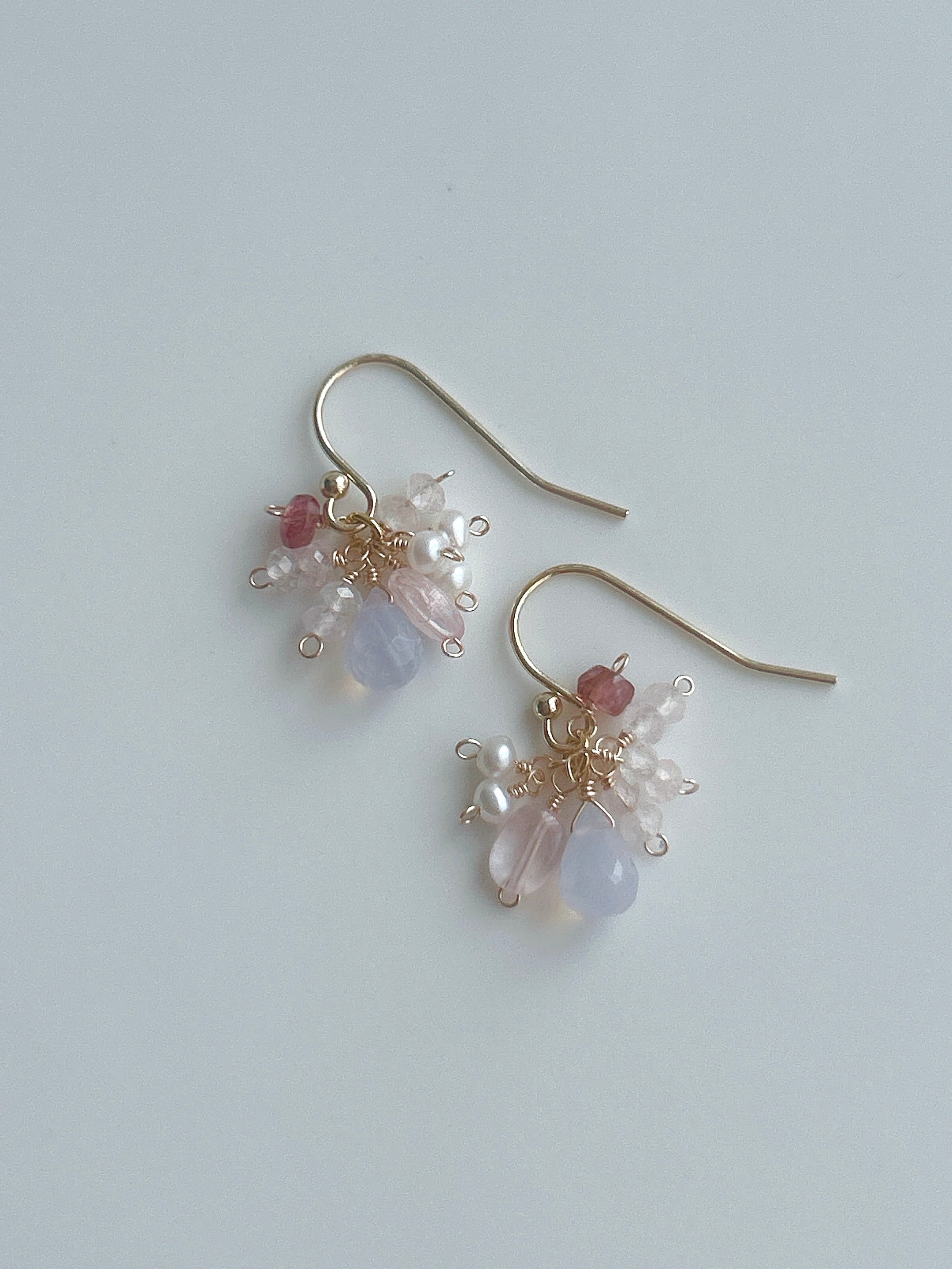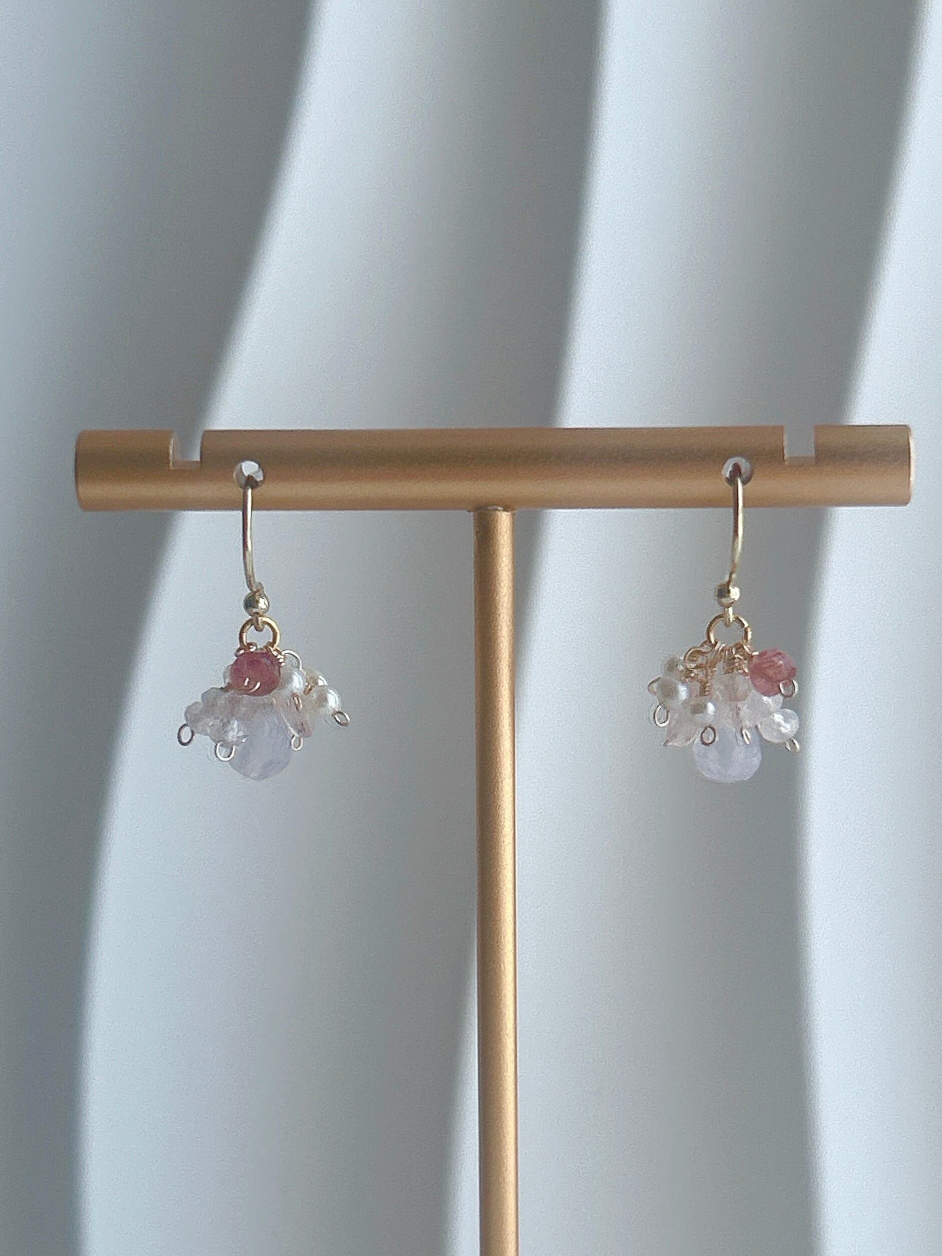 【14kgf】スコロライト&モルガナイト&ピンクトルマリン 小ぶりで華やぐピアス/イヤリングꕤ