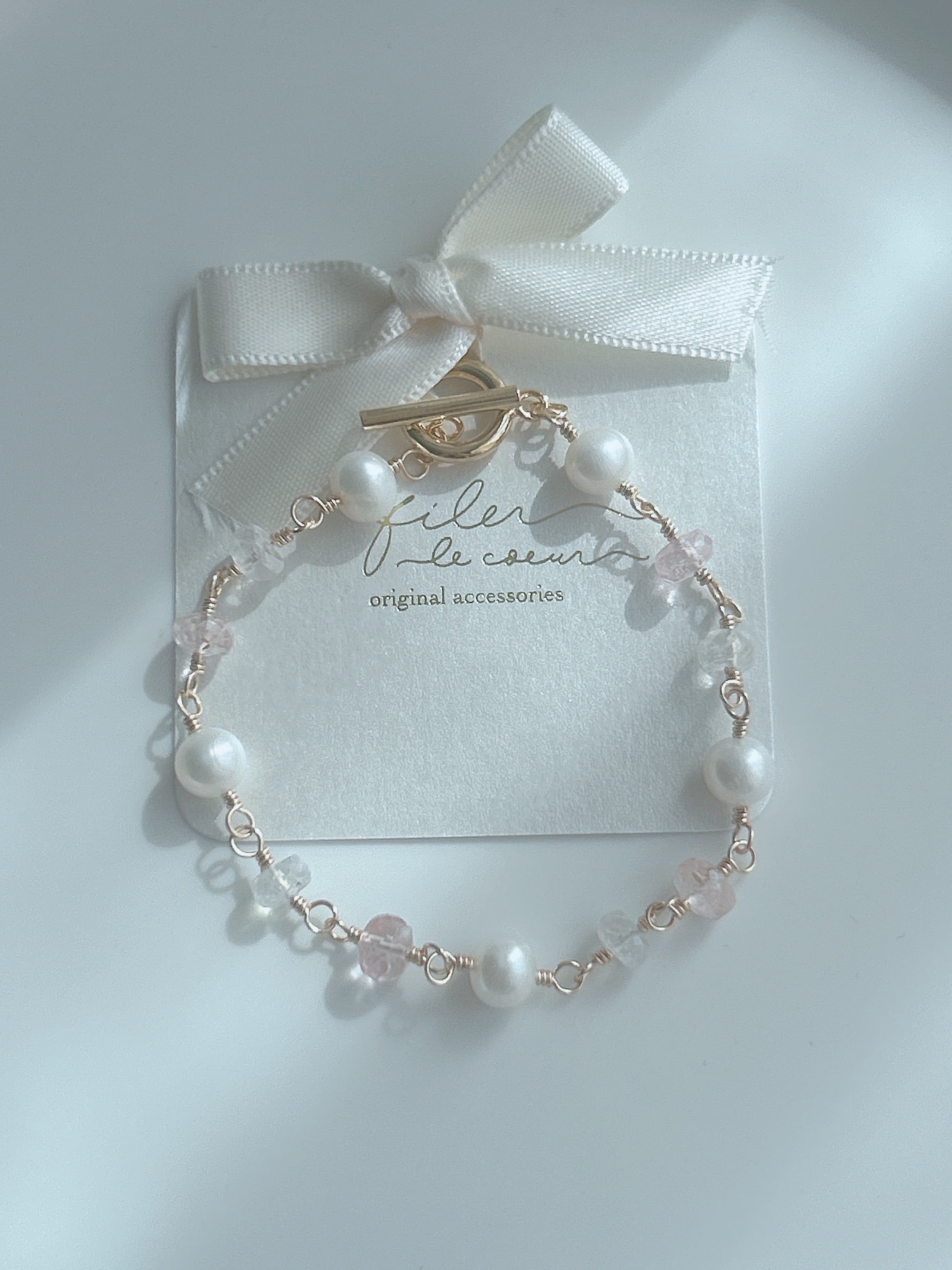モルガナイト&ブルームーンストーン&淡水パール ブレスレットꕤ