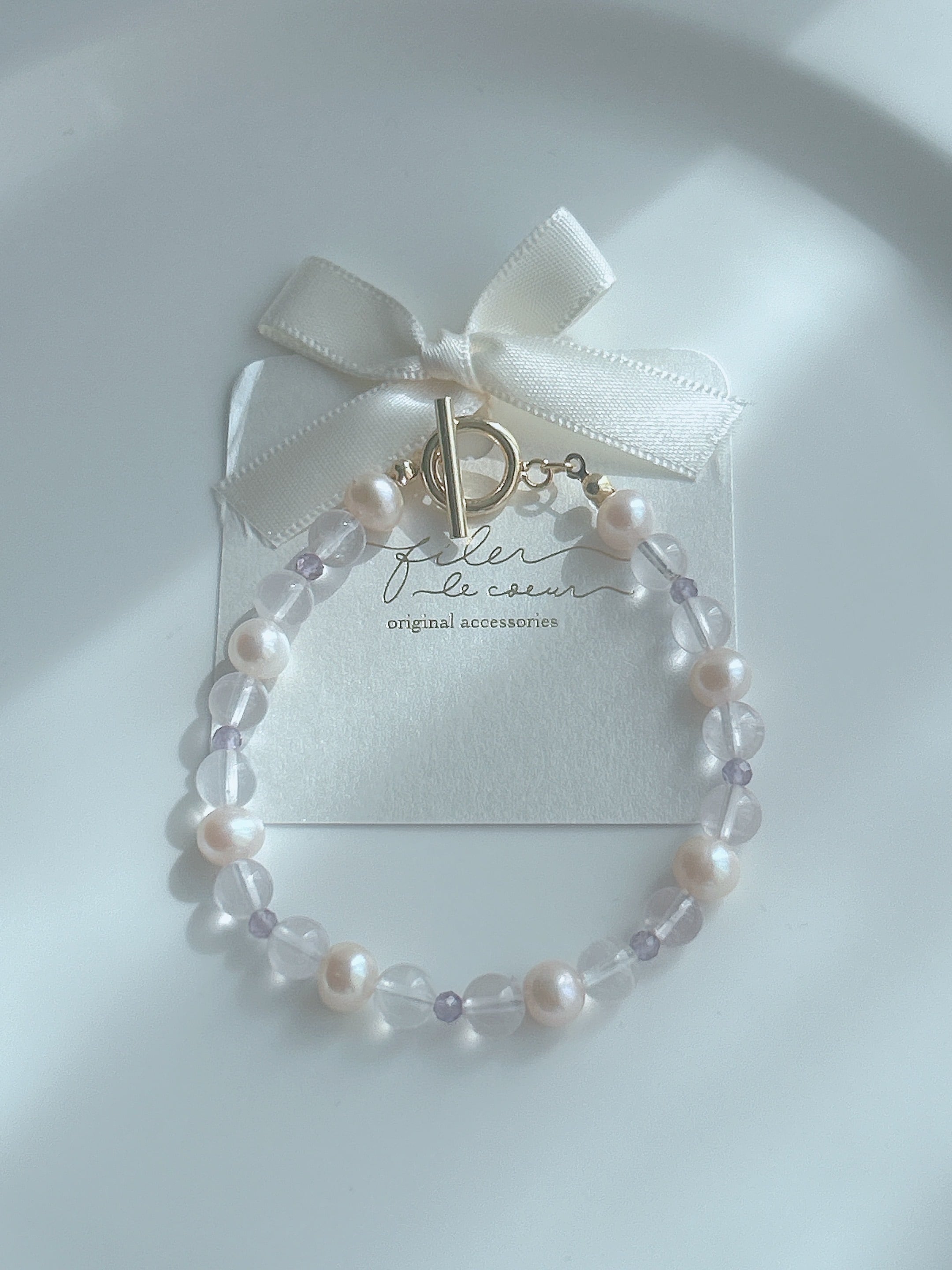 ローズクォーツ&ラベンダーアメシスト&淡水パール ブレスレットꕤ