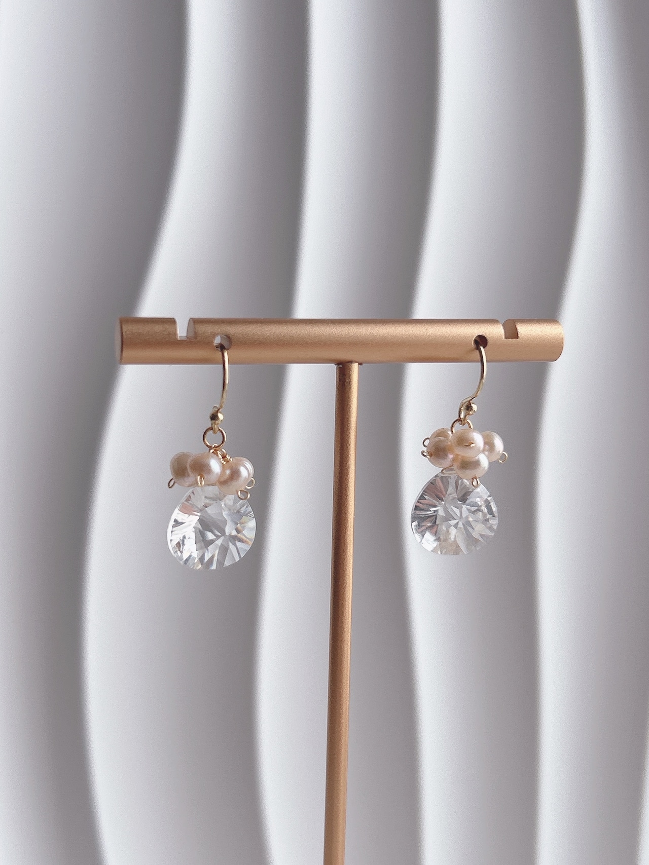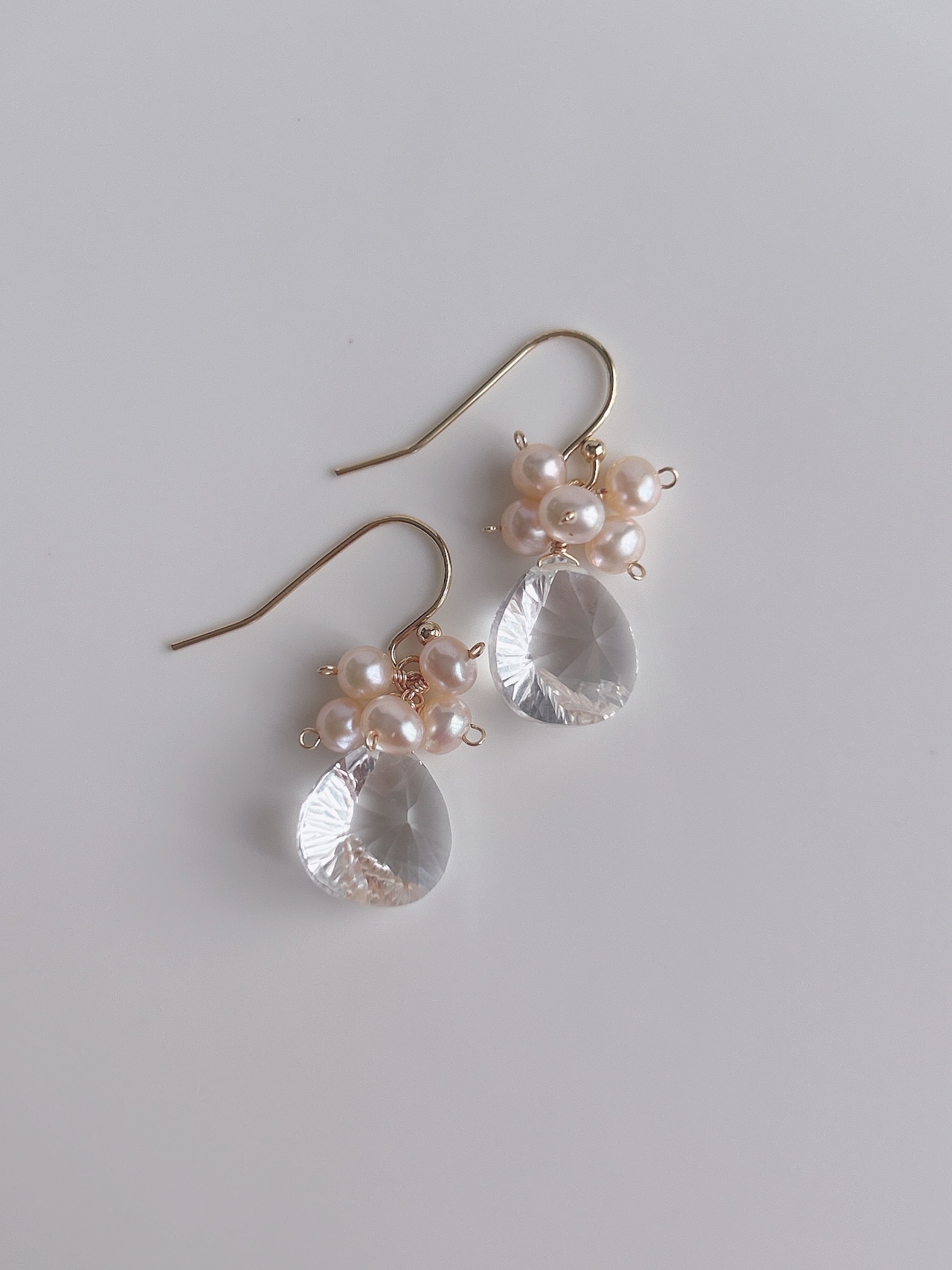 ピンク淡水パール:優しさや女性らしさを引き出し、耳元に上品で柔らかな華やぎを添える石。